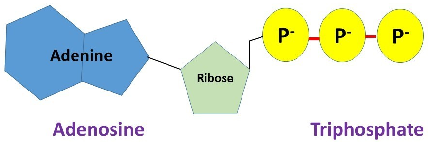 O trifosfato de adenosina (ATP) pode ser entendido como a “moeda” de troca de energia de uma célula. O ATP é composto por uma base adenina, um açúcar ribose e uma cadeia de grupos fosfato ligados à ribose. A energia é armazenada na ligação entre a ribose e o fosfato e é liberada quando essa ligação é hidrolisada.