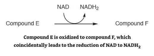 Reações de oxirredução sempre envolvem dois processos: uma parte é oxidada, e a outra sendo reduzida. O nucleotídeo de nicotinamida e adenina (NAD) é um cofator essencial para essas reações. Quando um composto precisa ser oxidado, ele pode fornecer átomos de hidrogênio para o NAD, transformando NAD⁺ em NADH.