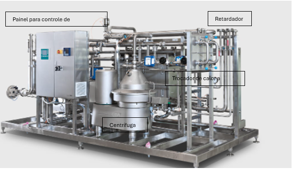Pasteurizador de leite com centrífuga para padronização do teor de gordura.